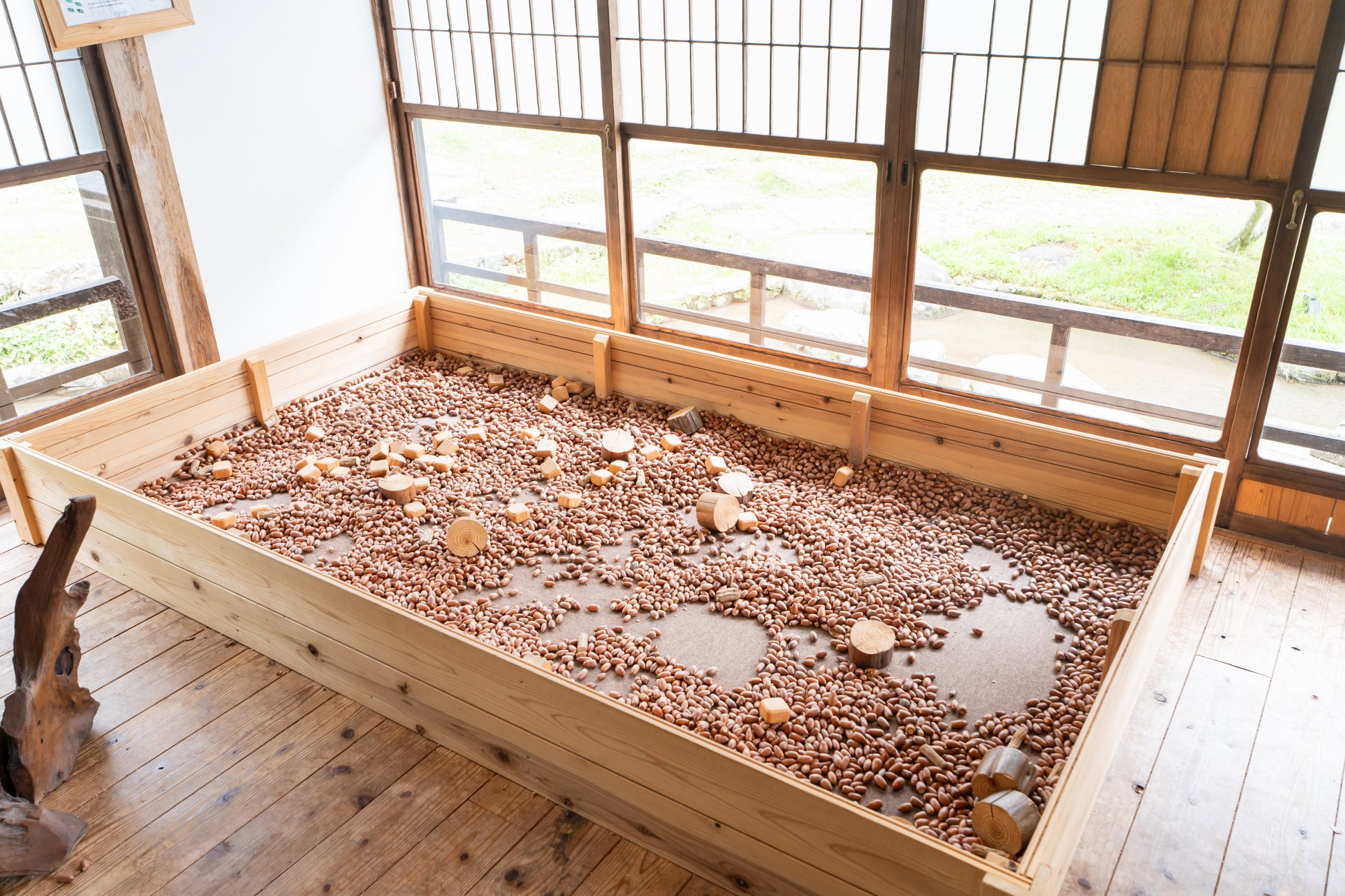 ちびっ子大好きなじゃぶじゃぶ池にある茅葺の古民家にあるキッズルームに『塩飴プール』を設置しておりますので倒れる前に「塩飴」を召し上がって、夏を楽しく乗り切りましょう♪