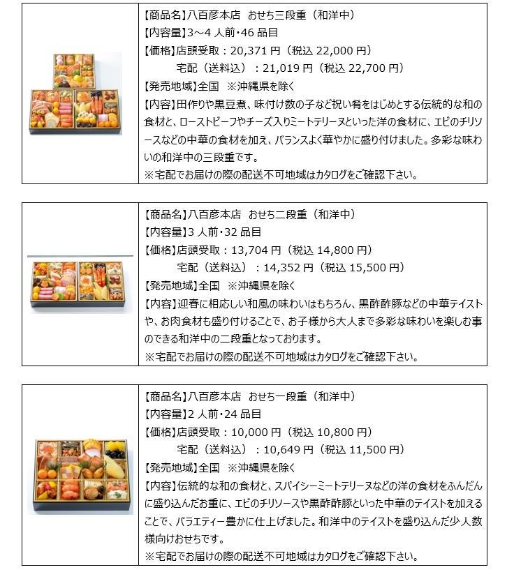 ※「八百彦本店」のおせちは、12月31日(土)のみのお届けです。