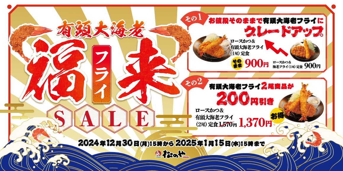 【松のや】食べ納め、新春のお祝いに 「有頭大海老フライセール」開催!