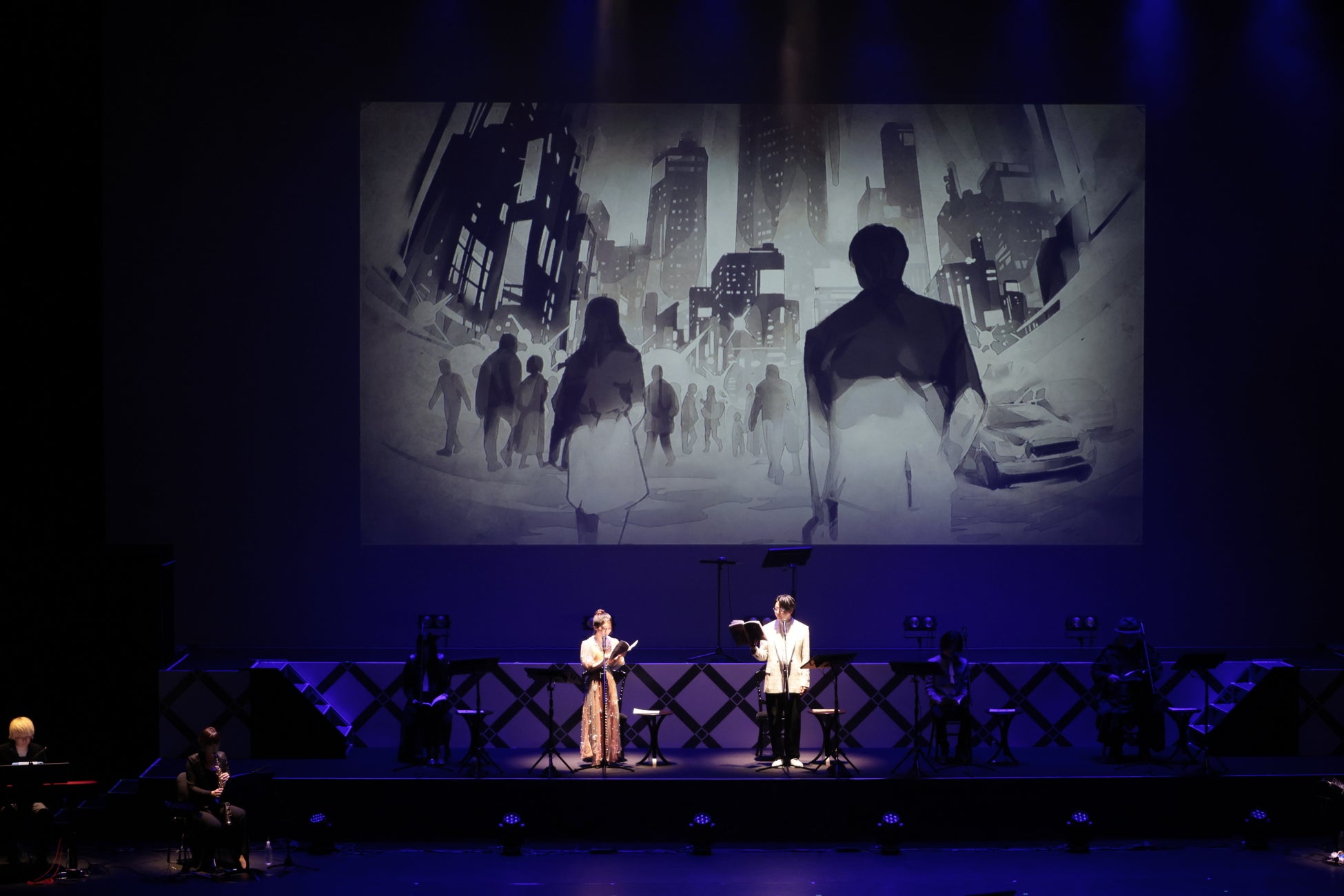 朗読×生演奏×舞踊が織りなす生の表現と映像効果とが一体となり、朗読劇の枠を超えた臨場感あふれるステージとなった本作。それぞれの表現技法が重なりあい、深い没入感を生み出していた。