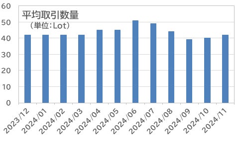 FX投資家の1注文あたりの平均取引数量は4.2万通貨(42Lot)へ微増。先行きへの不透明感と期待感が交錯する中で、リスクテイクしにくい状況が続いた模様。