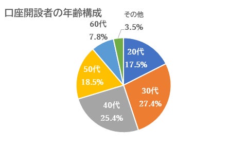 新規にFX口座を開設した投資家は、30代が27.4%とトップで、40代が25.4%、50代が18.5%、20代が17.5%と続いた。50代の割合が上昇した一方で、20代は後退した。