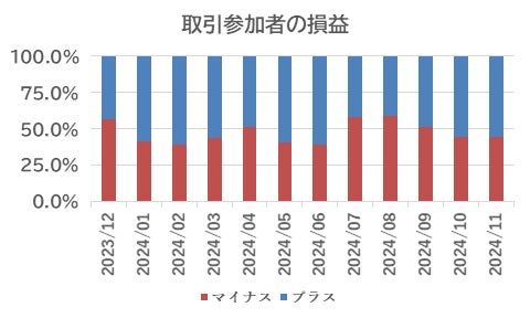 FX取引における実現損益でプラスは55.7%、マイナスは44.3%と、2カ月連続でプラス収支となった。
