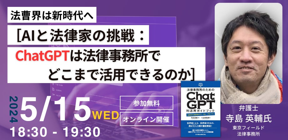 【2024年5月15日|無料セミナー】[AIと法律家の挑戦:ChatGPTは法律事務所でどこまで活用できるのか]オンラインセミナー開催!