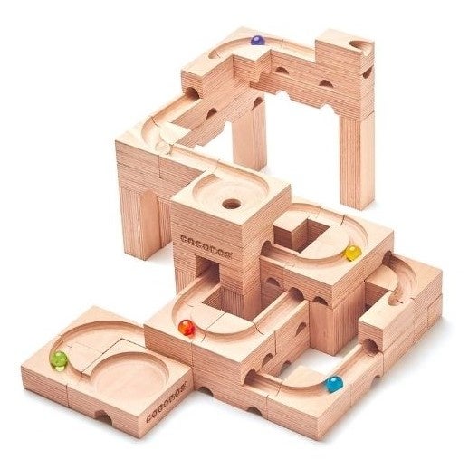 木材で工業製品を作る東大阪の町工場が、四角い木材の端材に着目。工場で培った”木に穴を開ける技術”を生かし、積み木×ビー玉×パズルを組み合わせた玩具を開発。