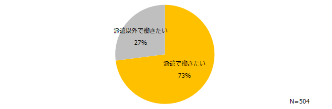 現在派遣社員として働いている方に、今後の働き方の希望を伺うと、73%が「派遣で働きたい」と回答しました。具体的な理由も紹介します。中には「直接雇用の前に、派遣社員として勤務し自分に合うかを確認したい」という声もありました。