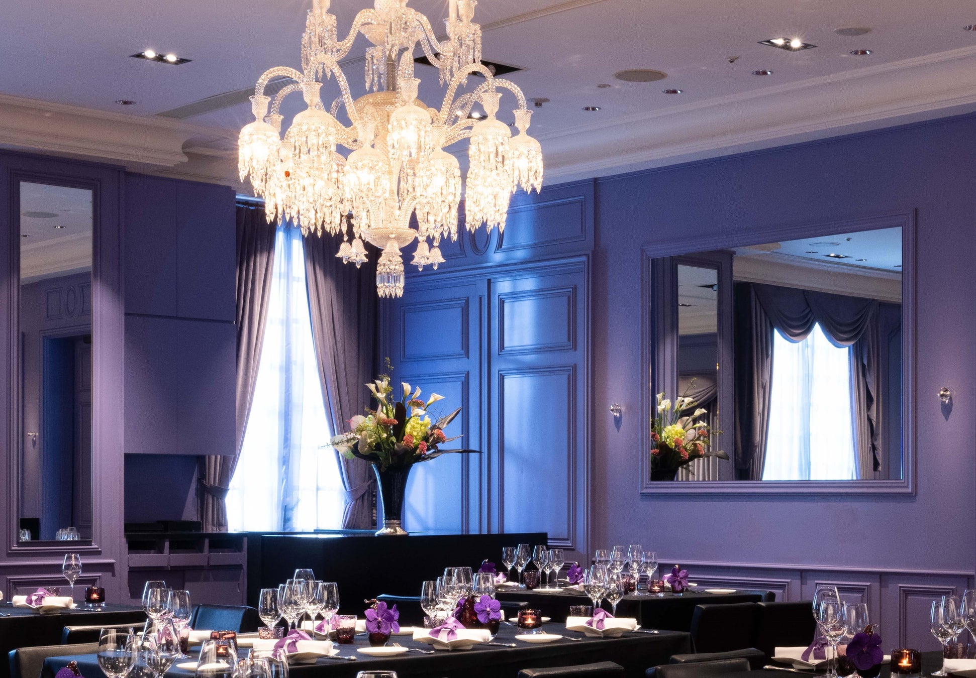 1994年に開業したフランスの古城を思わせるルイ15世王朝時代の建築様式を取り入れたシャトーの1階のラ ターブル ドゥ ジョエル・ロブション。フランスの伝統色であるラベンダーで統一された店内は上品で開放的な雰囲気に満ちています。