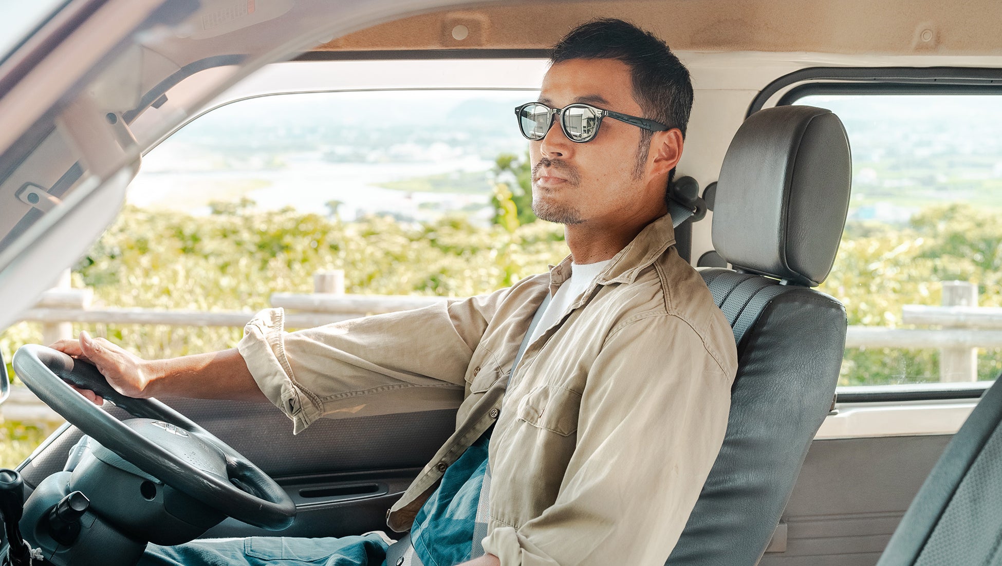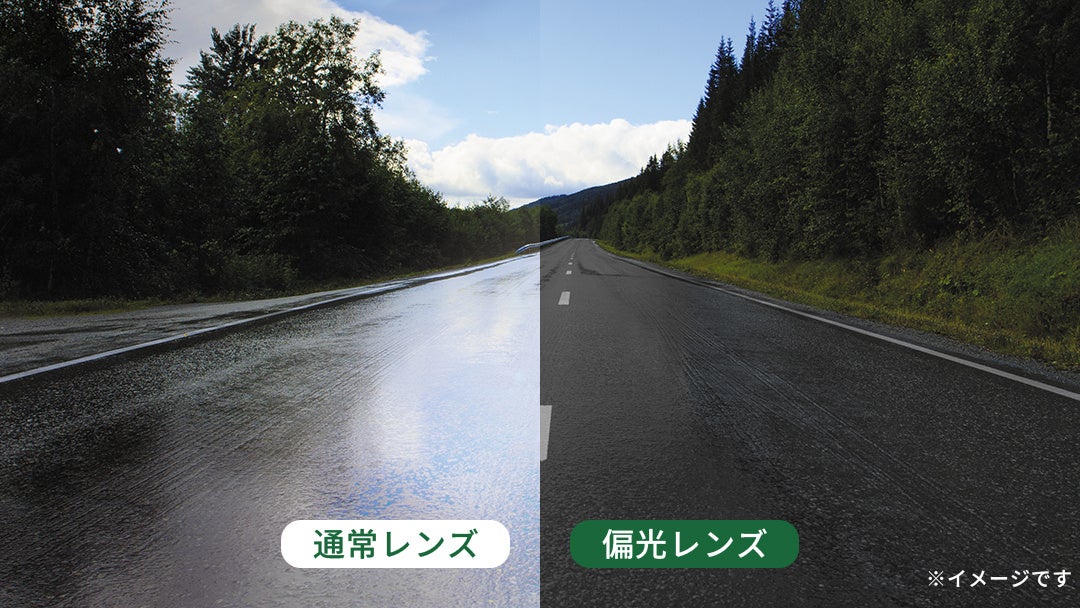 路面や水面などの反射光をカットし、ギラつきを抑える高機能カラーレンズを搭載。レンズの中に偏光フィルムを入れることで反射光をカットし、スッキリした視界を実現。日中のドライブ、釣り、ゴルフなど様々なアクティブシーンを快適にします。