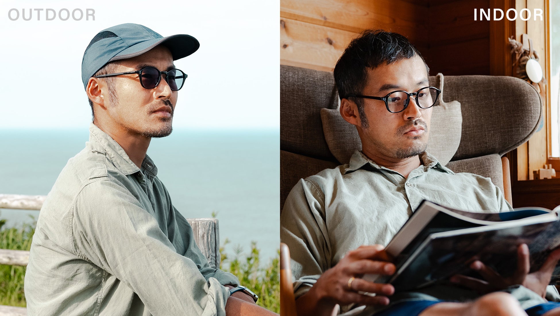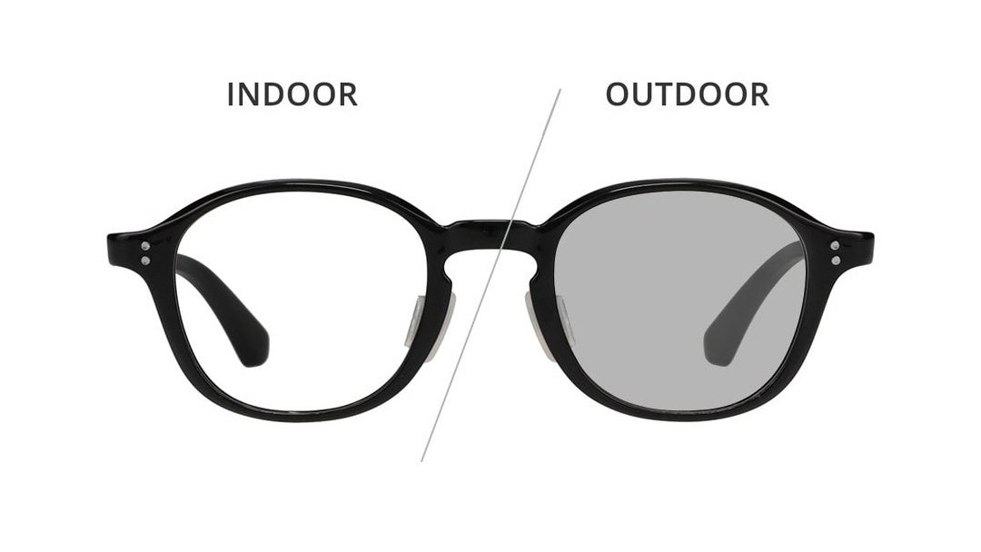 紫外線の量によってレンズの色の濃度が変化するサングラスです。屋外に出て紫外線が当たるとカラーレンズに変化し、屋内などの紫外線が当たらない場所ではクリアなレンズに戻ります。メガネとサングラスを掛け替える手間が無く、1本で2通りの活躍をします。