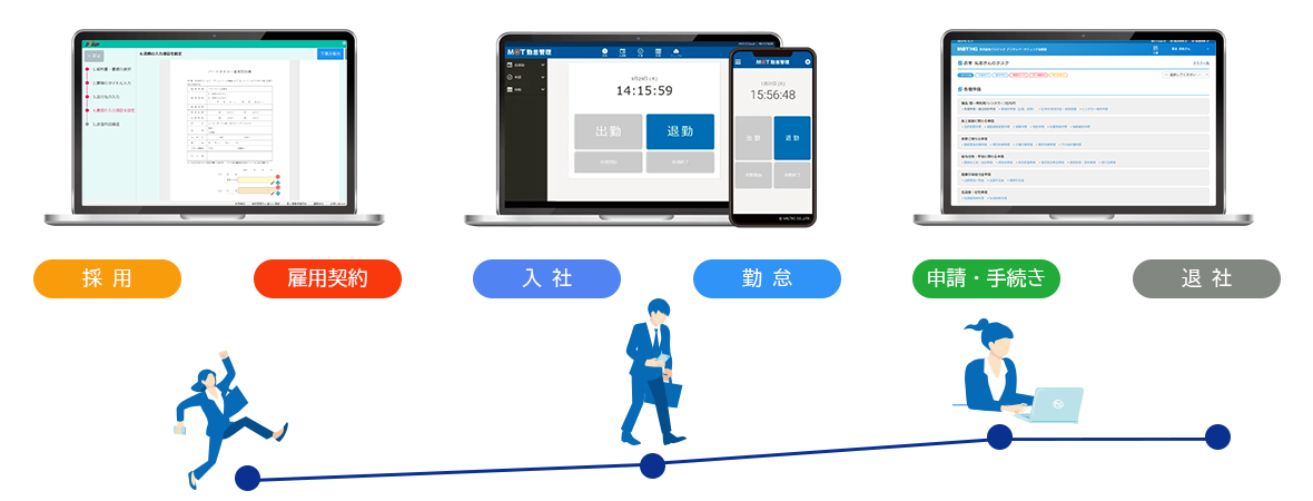 人事システムMOT/HGなら人事・総務の仕事がスマホで完結。採用、雇用契約、各種申請、届出業務を大幅削減します。