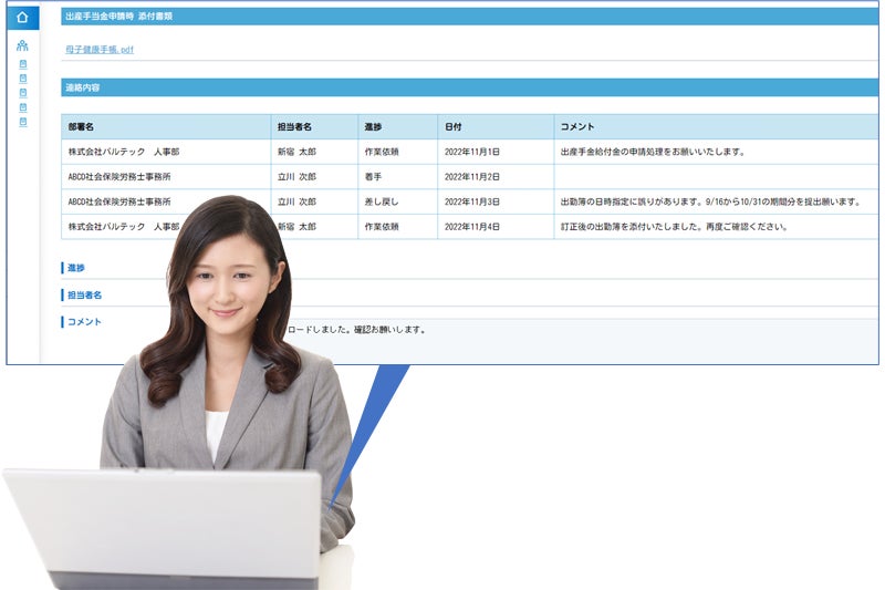 申請者・人事がアップした書類を労務士が直接確認して対応。完了報告までスムーズに行えます。