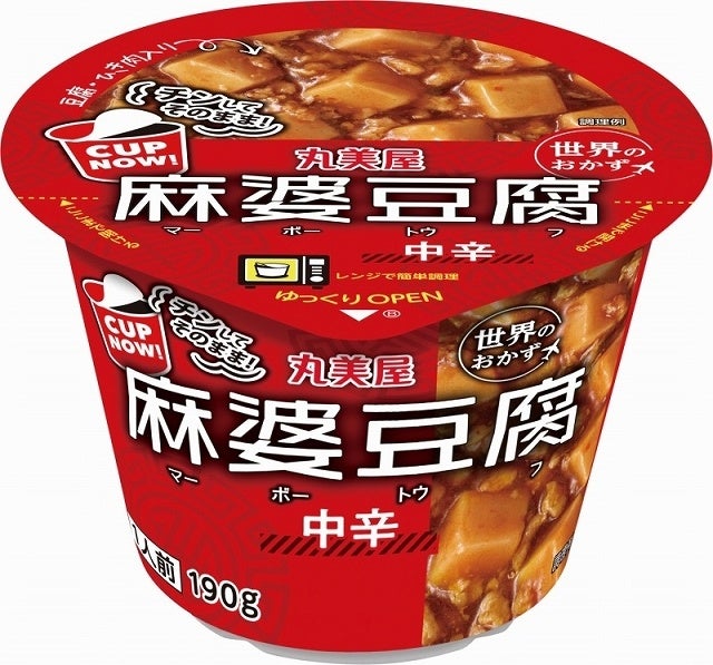 丸美屋食品工業株式会社(本社:東京都杉並区、社長:阿部豊太郎)では、電子レンジで温めるだけで1品惣菜ができるカップ形態の「チンしてそのまま!CUP NOW!」シリーズより、「チンしてそのまま!CUP NOW!<麻婆豆腐中辛>」、「チンしてそのまま!CUP NOW!<四川風麻婆豆腐辛口>」を2022年2月24日(木)から新発売いたします。簡便即食の需要が高まっている中、電子レンジで温めるだけのカップ惣菜シリーズを新たに提案することで、市場を盛り上げます。