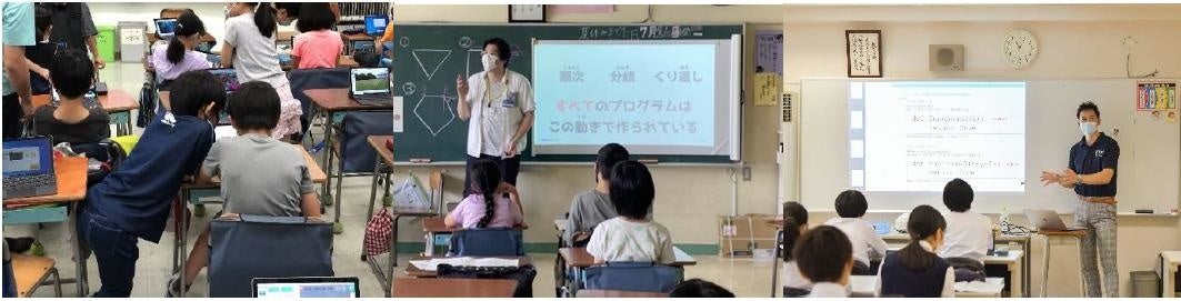 中央:渋谷区笹塚小学校でのGMOインターネットによるプログラミング授業の様子
