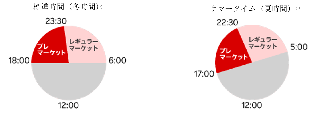 ※1:米国サマータイム(夏時間)は市場取引時間22時30分~5時、プレマーケット取引17時~22時30分