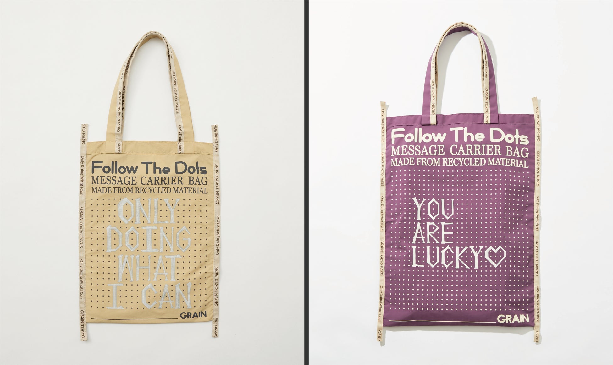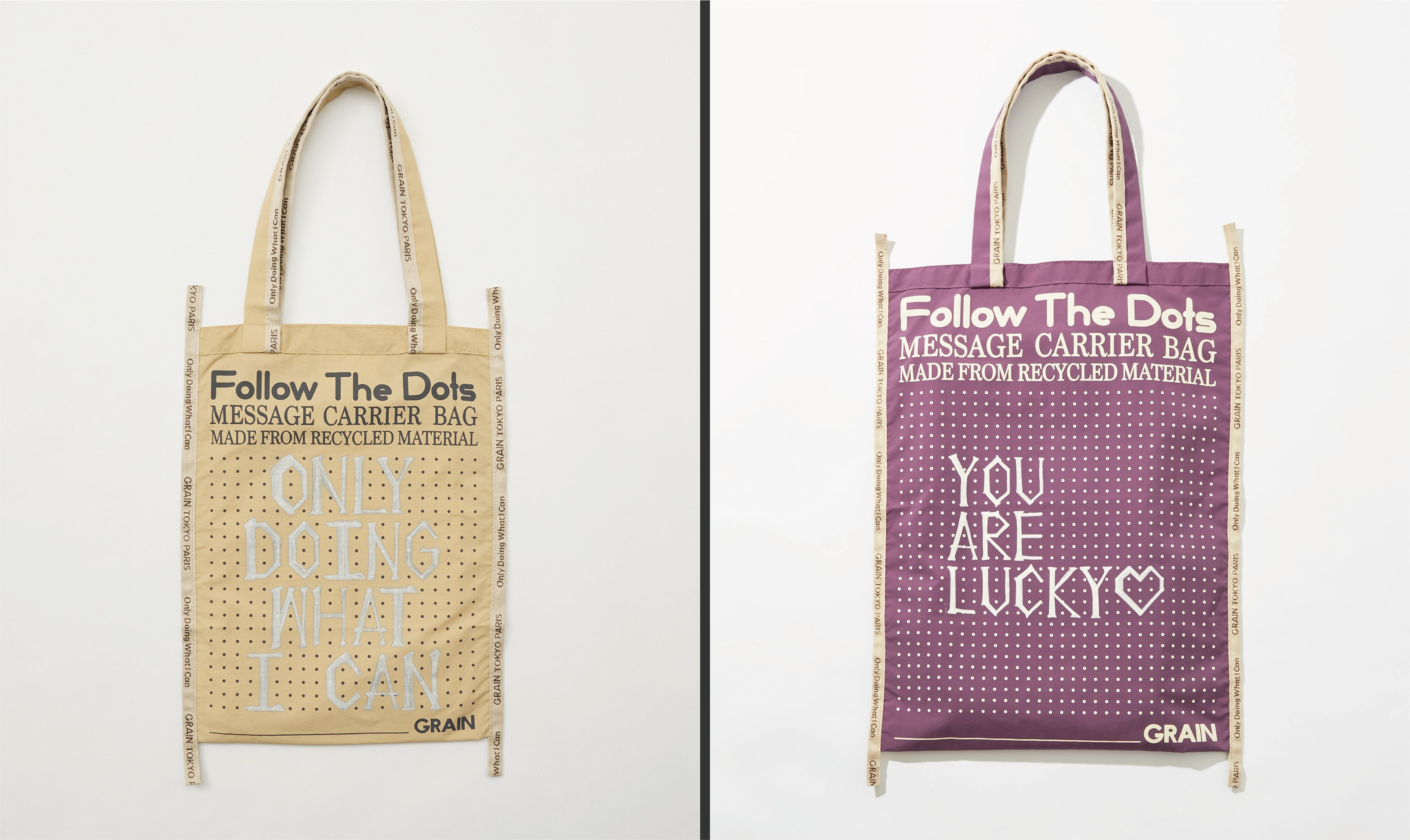 伝えたい言葉や、好きな単語、誰かの名前など様々な言葉を書くことで、バッグが新しいコミュニケーションを生み出します。