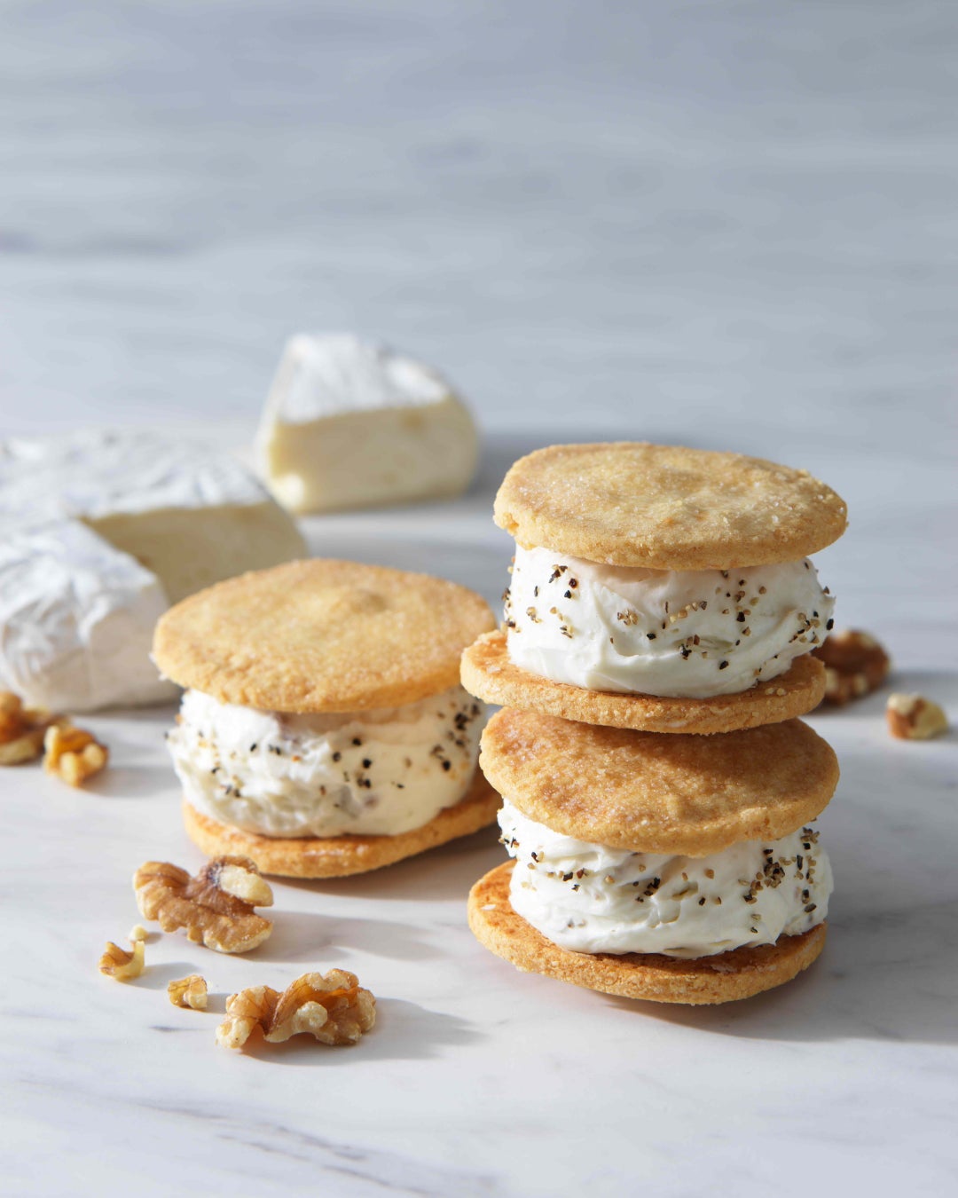 カマンベール、マスカルポーネ、クリームチーズをブレンドしたレアチーズクリームにクルミを加えナッツのコクをプラス。仕上げに粗びきブラックペッパーをトッピングしキリッと仕上げました。
