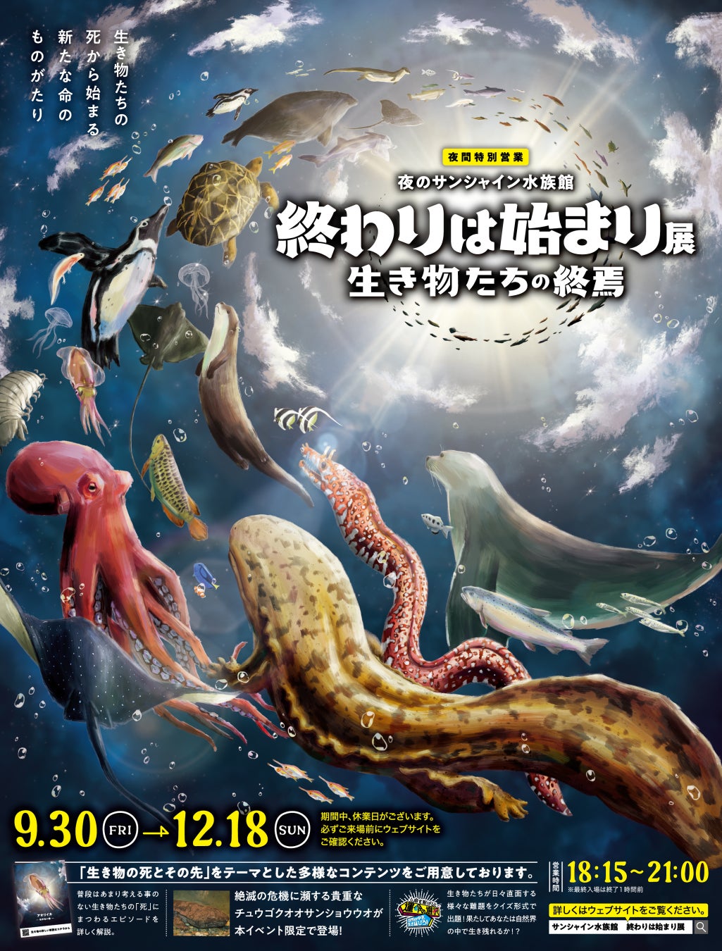 サンシャイン水族館(東京・池袋、館長:丸山 克志)は、9月30日(金)~12月18日(日)の期間、夜間特別営業として「終わりは始まり展~生き物たちの終焉~」を開催します。
