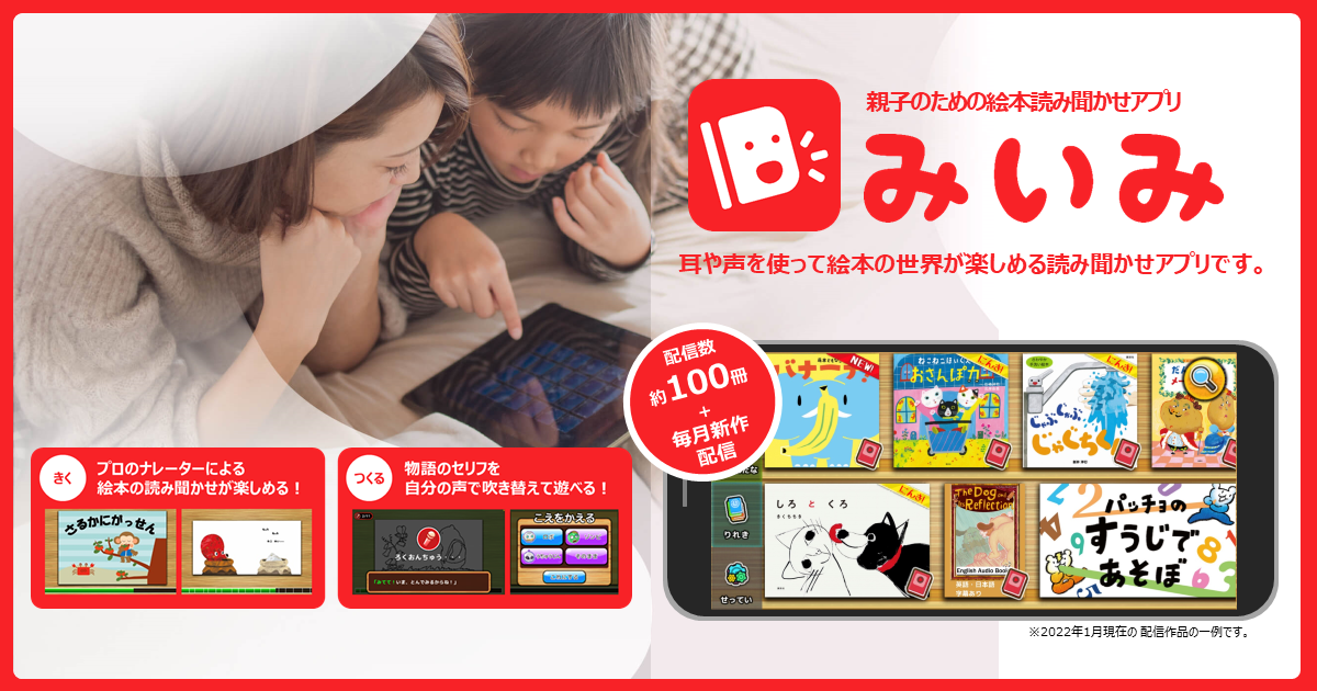 「みいみ」では、プロのナレーターによる読み聞かせで絵本をお楽しみいただけます!