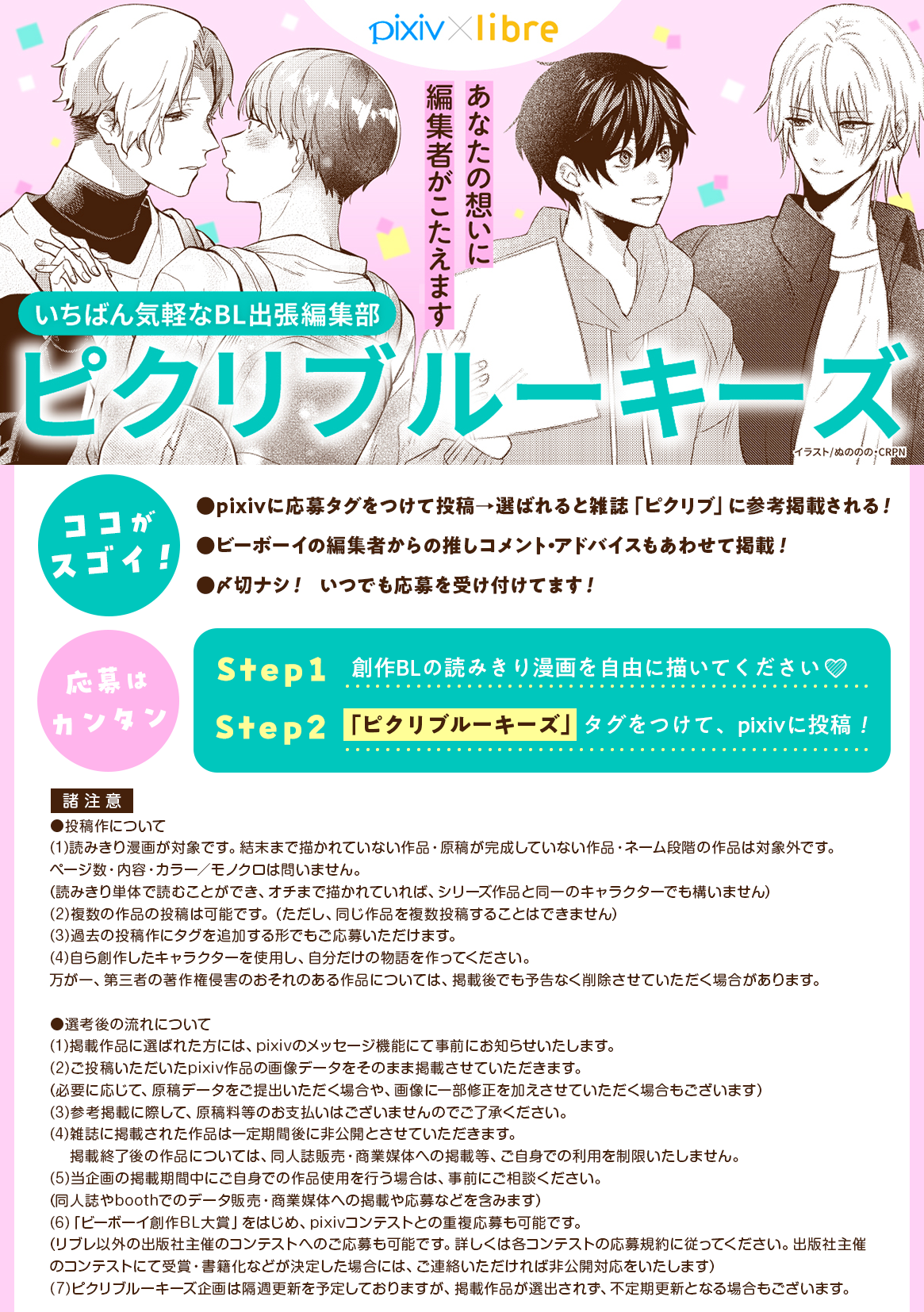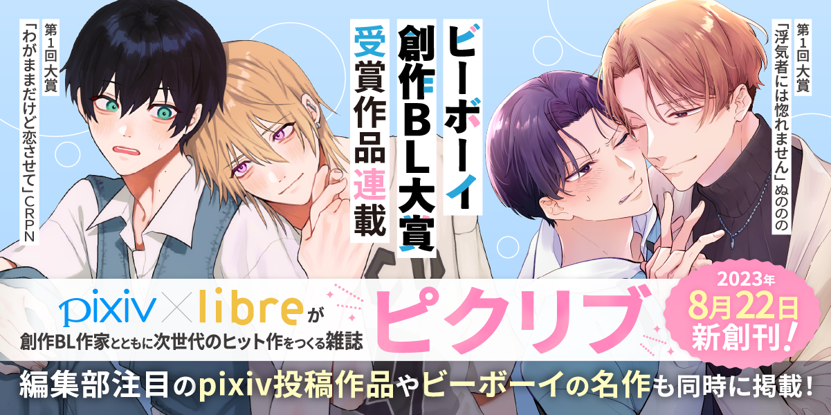 ビーボーイ創作BL大賞の受賞作品をpixiv×リブレが完全バックアップする新雑誌「ピクリブ」での連載が8月22日よりスタートいたします!