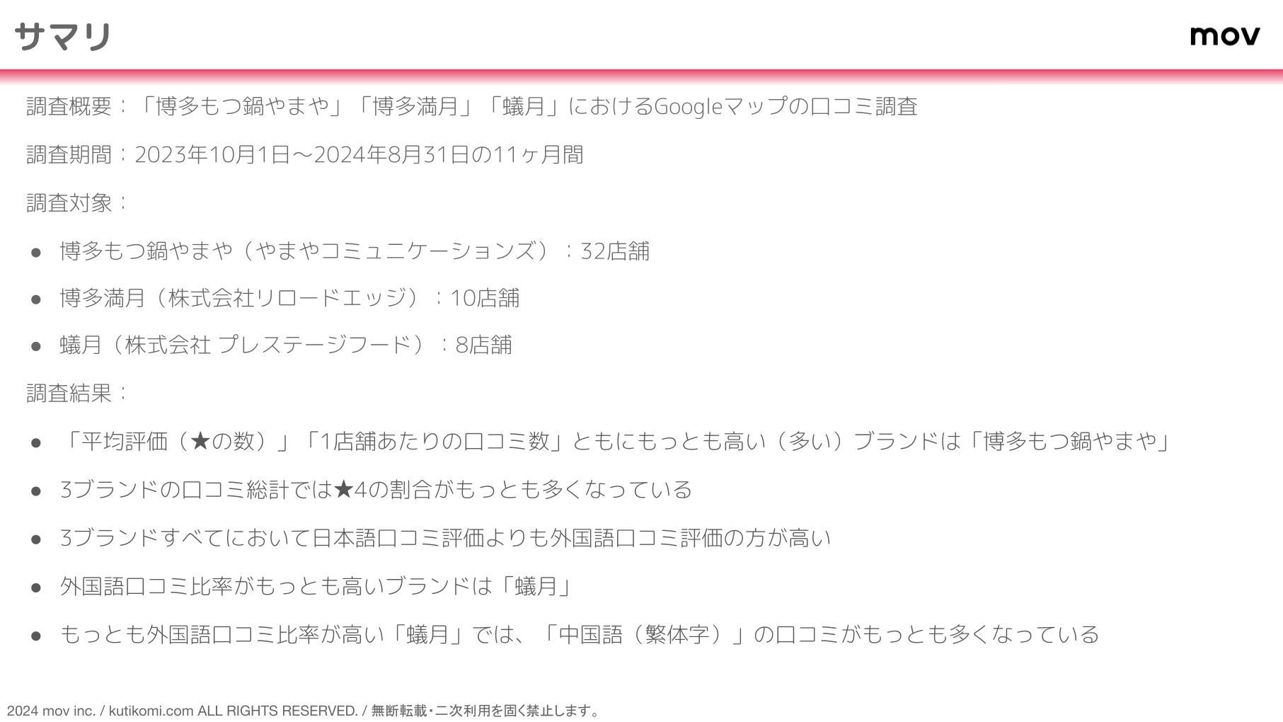 AI店舗支援SaaS「口コミコム」を運営する株式会社mov(代表取締役:渡邊 誠、本社:東京都渋谷区、以下mov)では、『口コミコム』の分析機能を用いたレポートを公開しました。