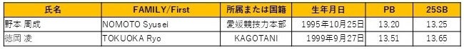 ▼出場選手発表第1弾:男子110mハードル、男子400mハードル、女子100mハードル