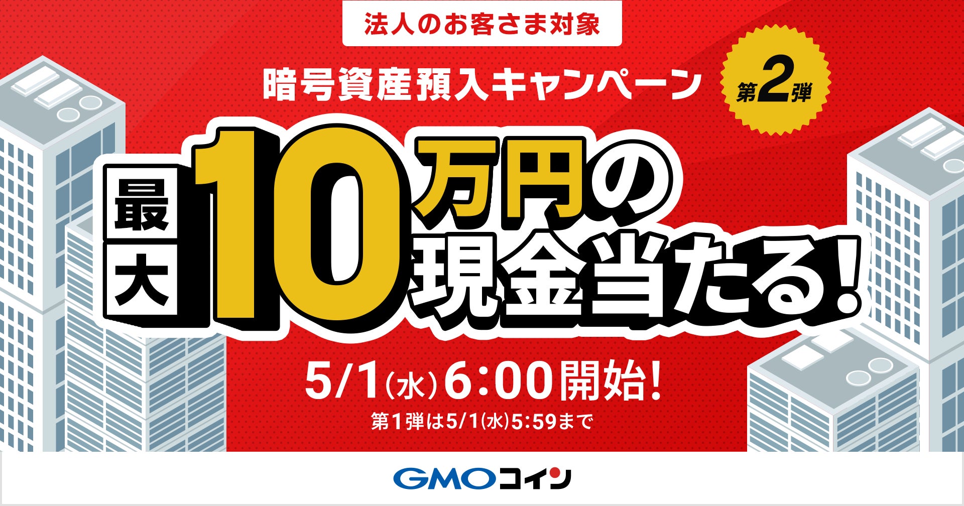 GMOコイン:【法人口座】最大10万円の現金が当たる!暗号資産預入キャンペーン第1弾 終了間近 & まもなく第2弾スタート!