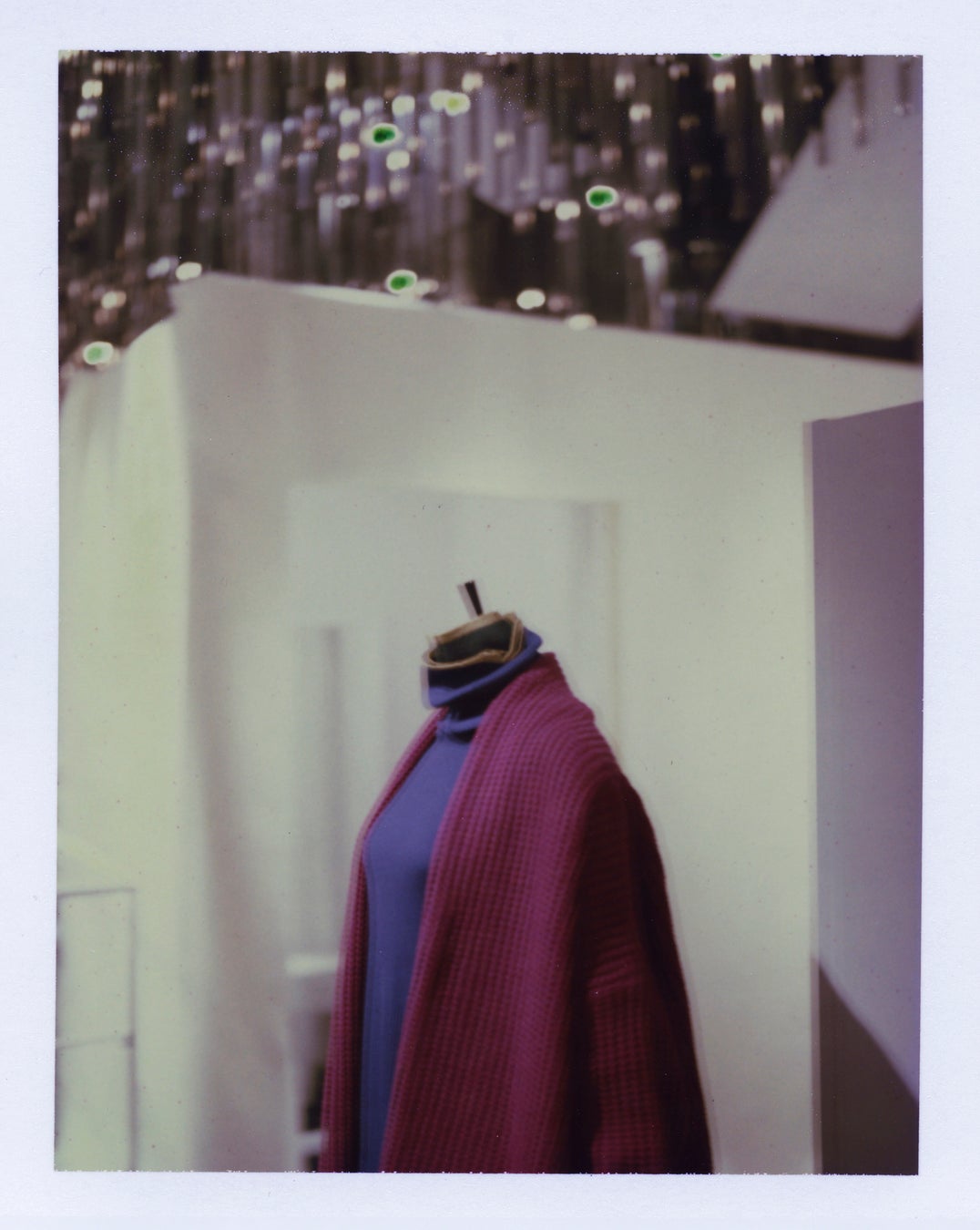 Y'sとJOHN SMEDLEYの創作の視点──クラフツマンシップや、柔軟な創作への意欲が意匠として表現された空間に、Y's 2003秋冬のニットウェアに着想を得たカプセルコレクションの色彩のレイヤードが新鮮にプレゼンテーションされています。