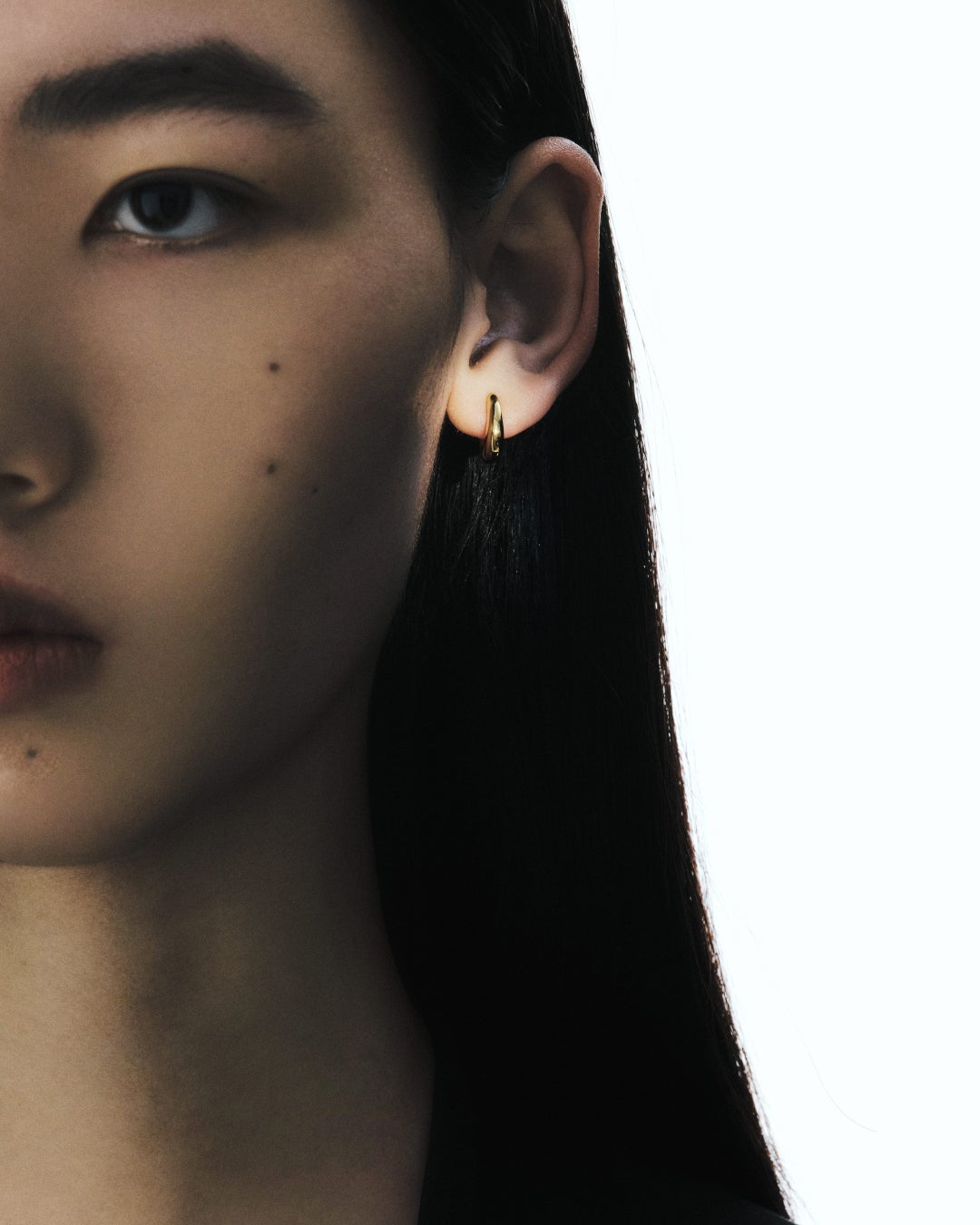 今回のコレクションでは、クラシックで繊細なフープピアス<Liz Huggies>のマットゴールドとマットシルバー、ゴールドとシルバーの2素材をご用意。