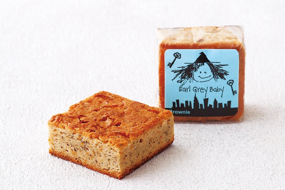 限定品で発売されたこのお味、「いつでも食べたい!」と多くのお声をいただき、定番化されたブラウニー。スリランカ産のアールグレイ茶葉をふんだんに練りこみ、入れたての紅茶のように仕上げました。茶葉の風味、絶妙な甘さ、食感、トータルバランスの取れた自信作です。