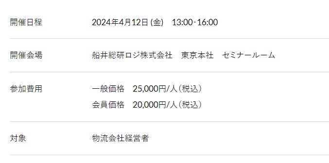 日本最大級のロジスティクス・物流コンサルティングファーム 船井総研ロジ株式会社(東京本社:東京都千代田区、代表:菅重宏、以下「船井総研ロジ」)は、2024年4月12日 (金) 13:00‐16:00、運送会社・物流会社経営者の方々を対象にした「営業組織づくりセミナー」を東京で開催いたします。
