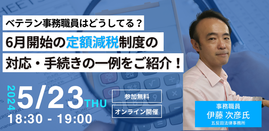 【2024年5月23日|無料セミナー】「ベテラン事務職員はどうしてる?6月開始の定額減税制度の対応・手続きの一例をご紹介!」オンラインセミナー開催!