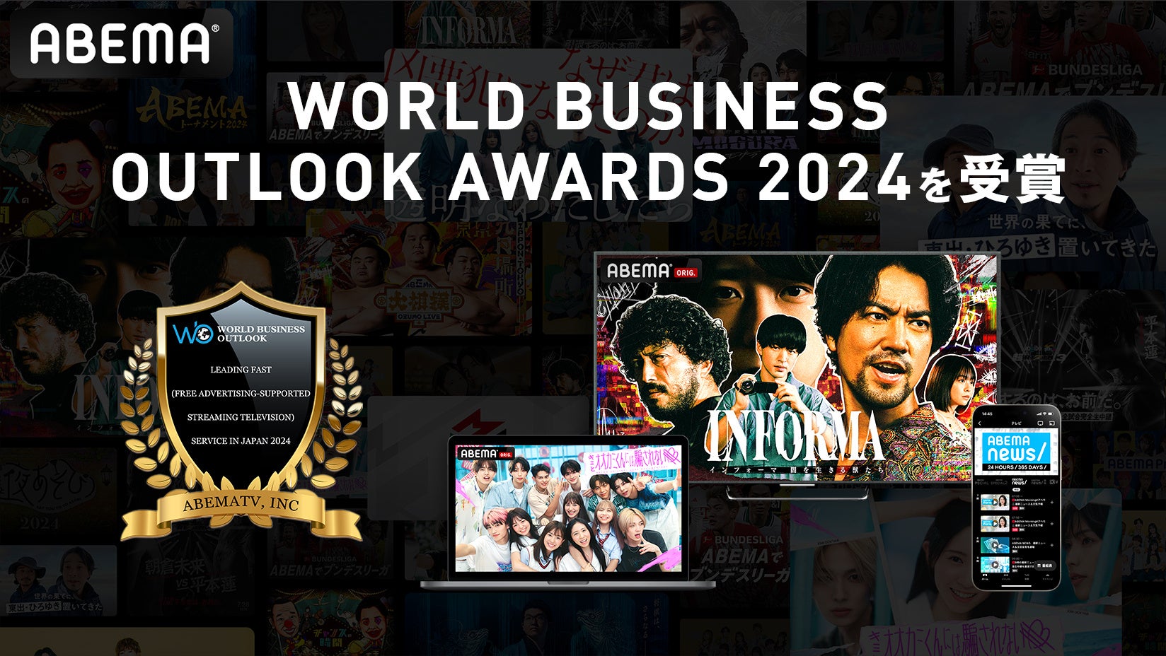 新しい未来のテレビ「ABEMA(アベマ)」は、ビジネスにおける業績や成長、多大な貢献を表彰するアワード「WORLD BUSINESS OUTLOOK AWARDS 2024」において、「Leading FAST Service in Japan 2024」部門を日本のメディアとして初めて受賞したことをお知らせいたします。