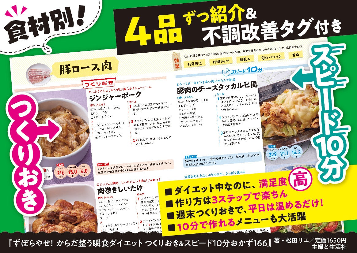 9月27日(金)発売の新刊『ずぼらやせ!からだ整う瞬食ダイエット つくりおき&スピード10分おかず166』は、8月5日に予約受付をスタート。