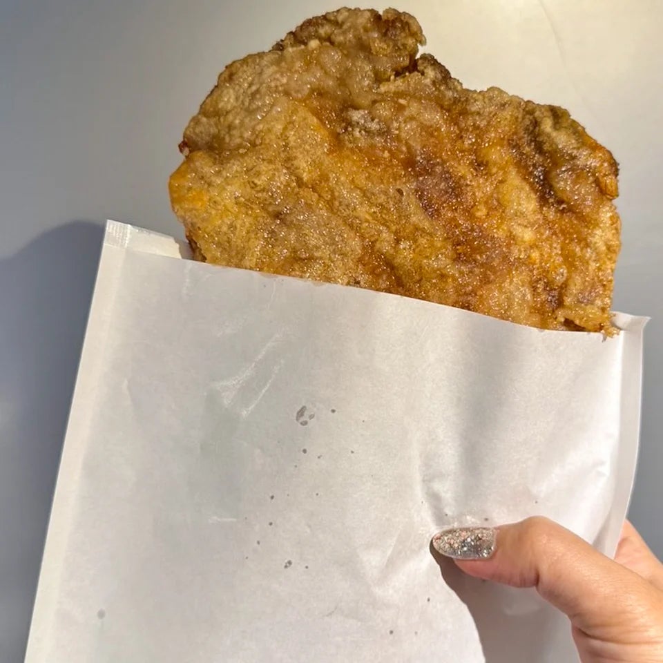 台湾唐揚げ(ダージーパイ)台湾の夜市で大人気の巨大唐揚げ国産鶏むね肉一枚を叩いて伸ばしスパイスで味付けしました。顔ほどのサイズの巨大唐揚げをワンハンドでお召し上がりください。
