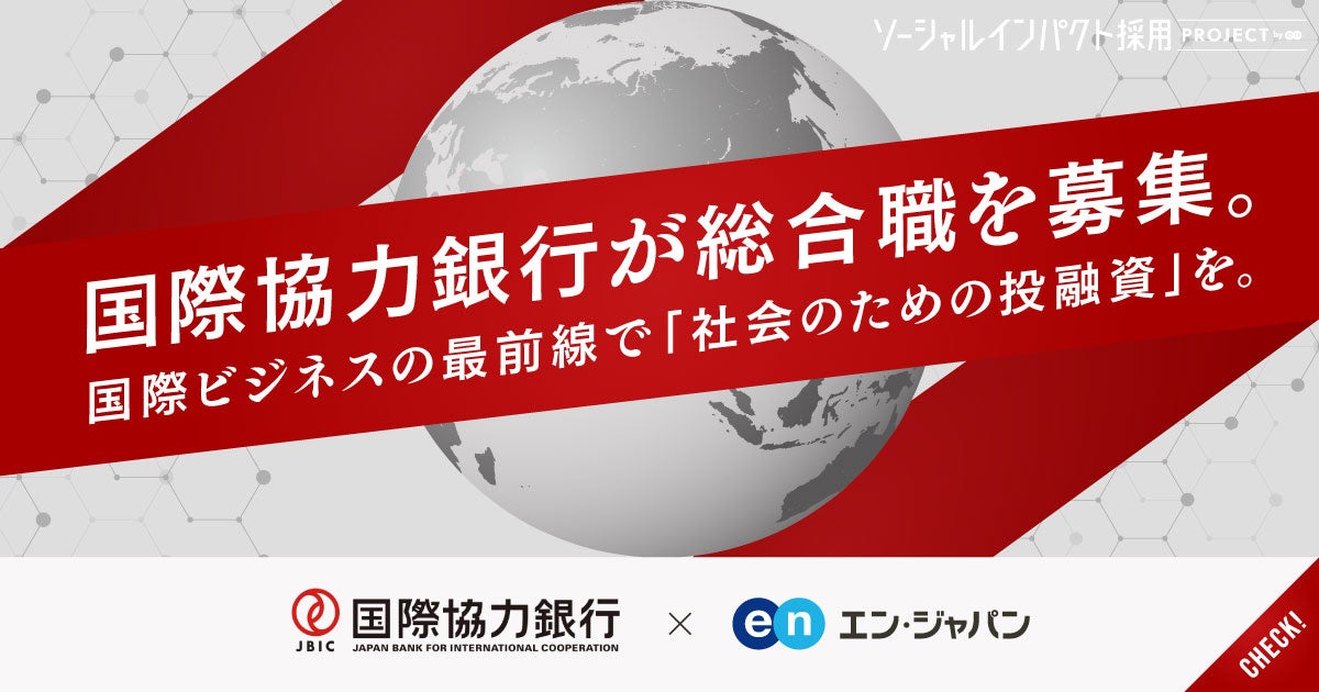 国際協力銀行(JBIC)、エン・ジャパンで日本・世界を舞台に活躍する「総合職」を公募