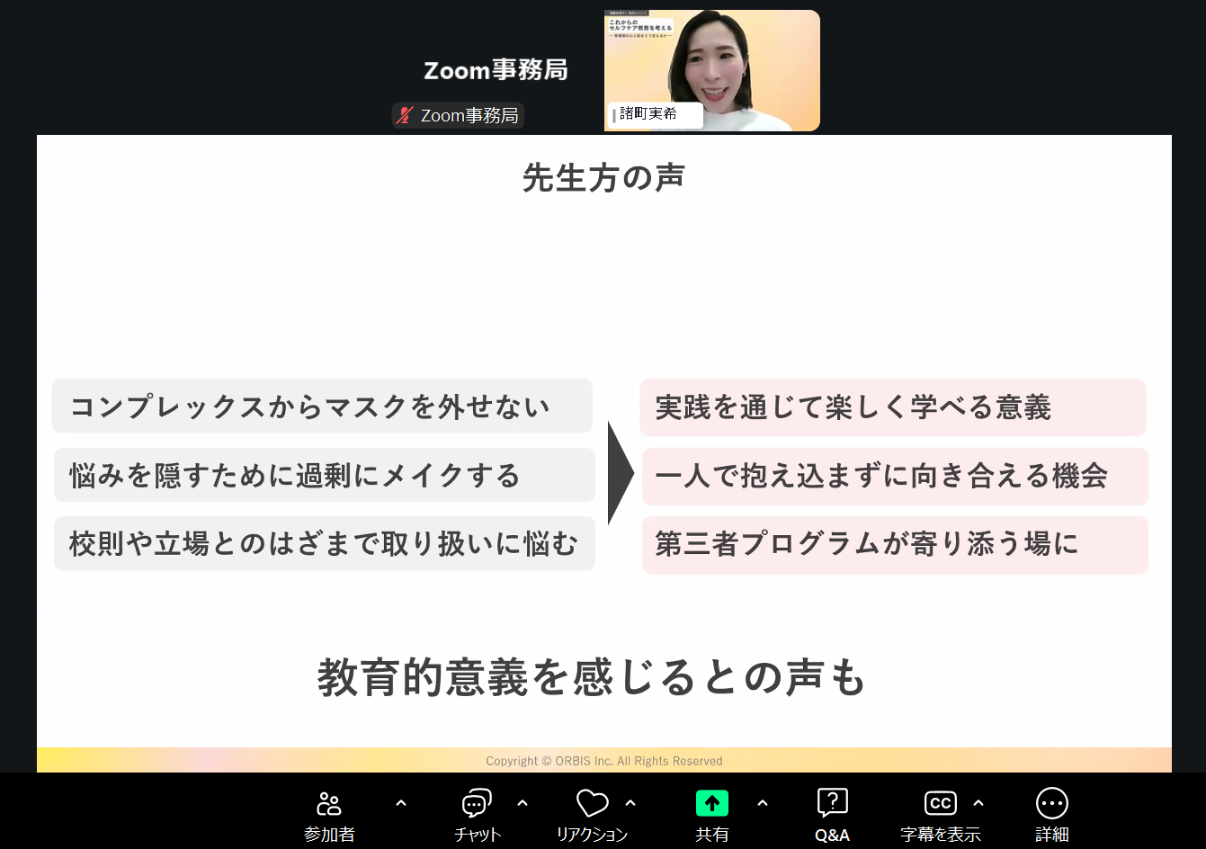 オルビス株式会社(本社:東京都品川区、代表取締役社長:山口裕絵、以下:オルビス)は、国際女性デー(3月8日)を、次の世代を取り巻く環境について考える節目と捉え、中学・高校の学校関係者および保護者を対象に、「思春期の心と肌を健やかに育むセルフケア教育」をテーマとしたオンラインイベントを2026年3月4日(水)に開催しました。