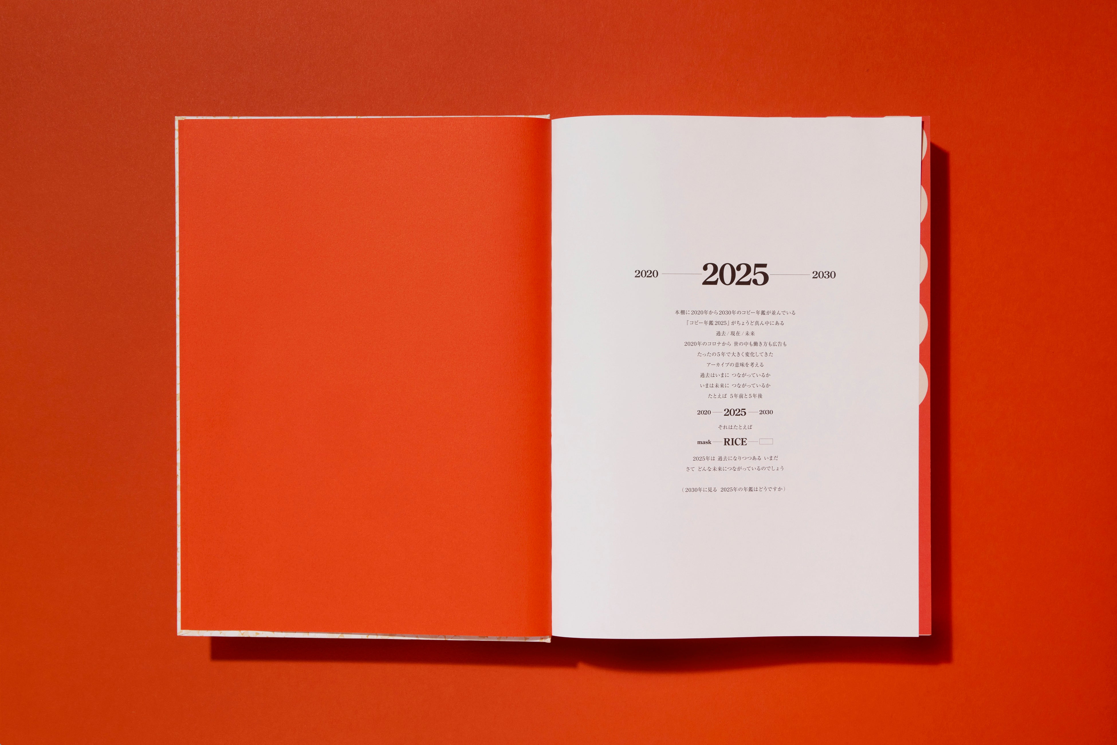 デザインは見ての通り、2025年に社会問題となり、その年を象徴する「米」です。見た目だけではなく、この年鑑を手に取ると、一粒一粒の触感も楽しめます。