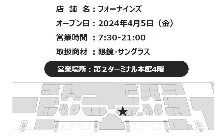 2024年4月5日(金)、第2ターミナル本館4階 AIRPORT MALL内に、日本のアイウェアブランド「フォーナインズ(999.9)」がオープンいたします。