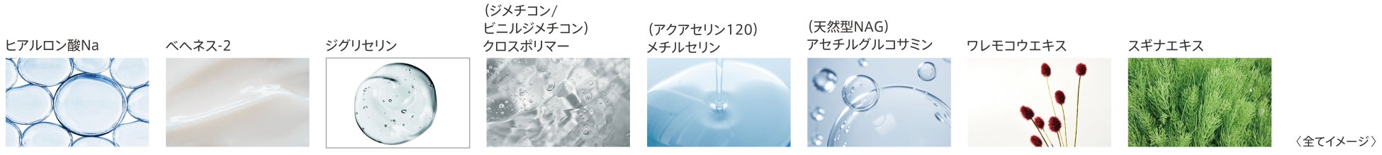 *2 ヒアルロン酸Na、べへネスー2、ジグリセリン、(ジメチコン/ビニルジメチコン)クロスポリマー、メチルセリン、アセチルグルコサミン、ワレモコウエキス、スギナエキス