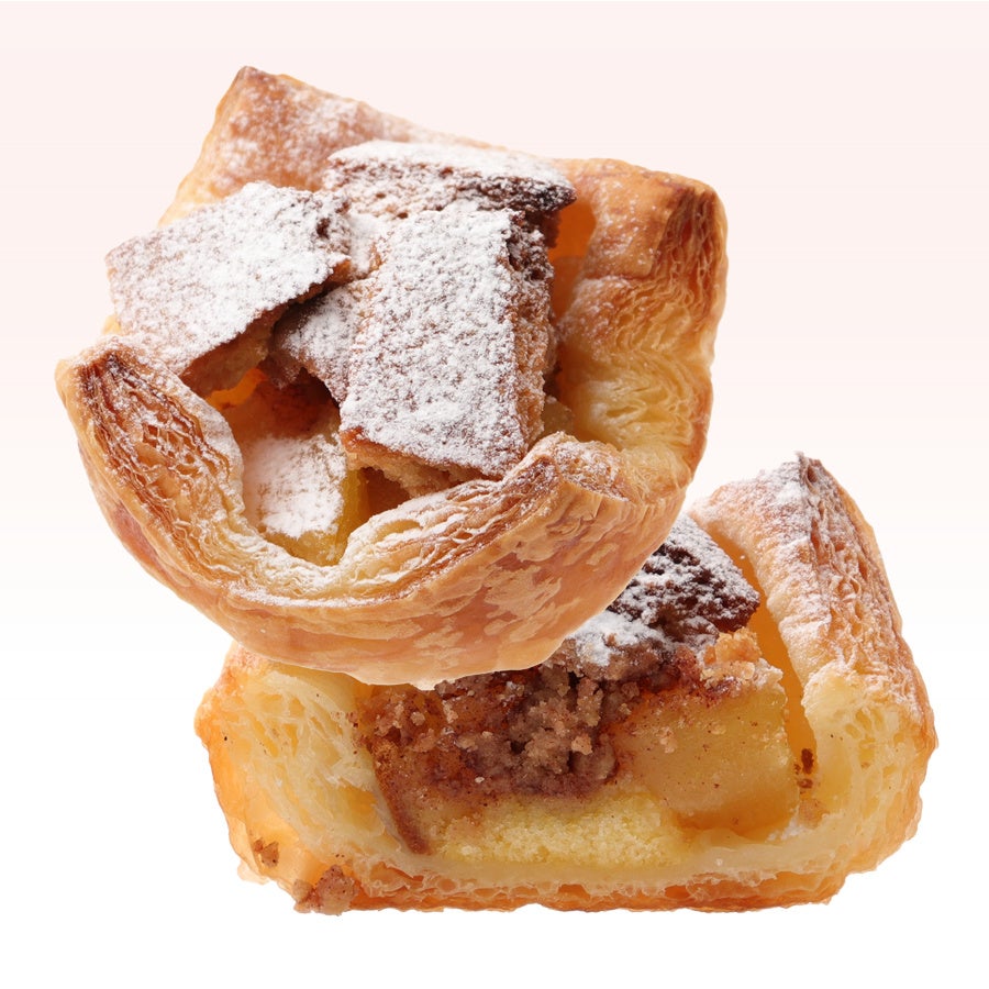 デニッシュに、ごろっとしたりんごとザクザク食感のシナモンクリームを入れ、スペキュロスをトッピング。