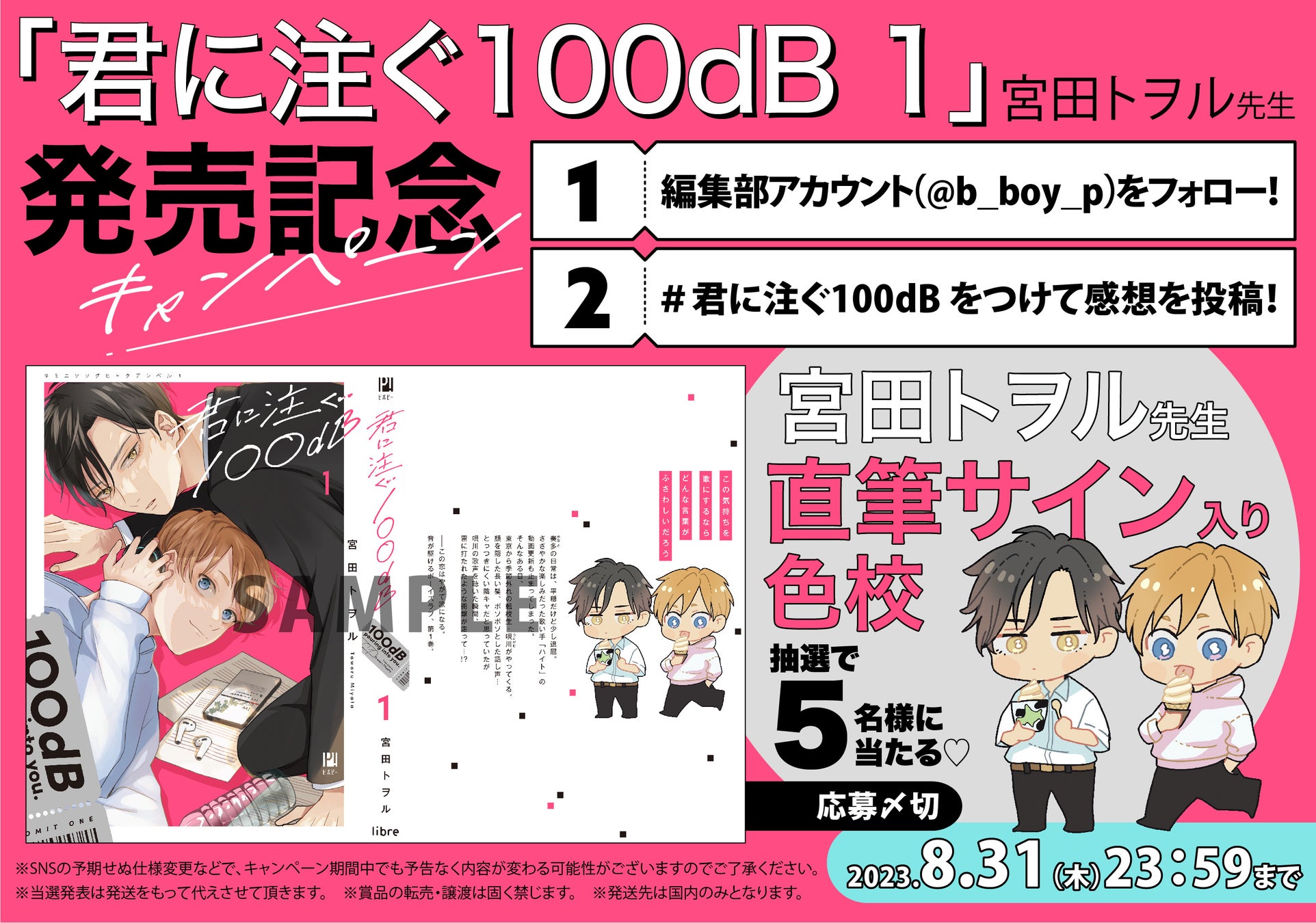 【明日発売】あの宮田トヲルが描く音楽×青春×ボーイミーツボーイ!「君に注ぐ100dB (デシベル)1」明日8月19日発売★