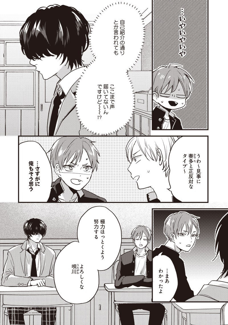 ――この恋はやがて歌になる。音が駆けるボーイズラブ、第1巻。