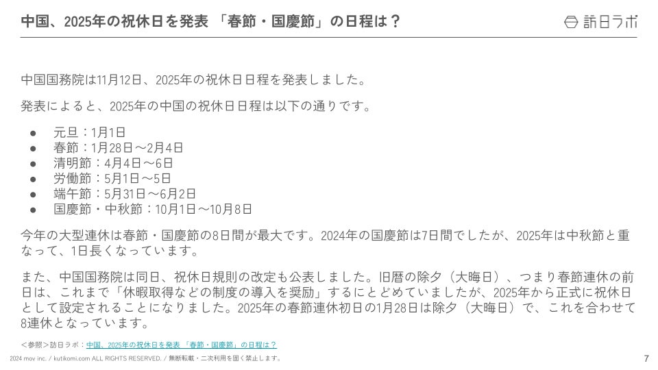 中国、タイの2025年祝日発表:観光・インバウンドの最新動向がわかる!インバウンド情報まとめ「2024年11月後編」を訪日ラボが公開