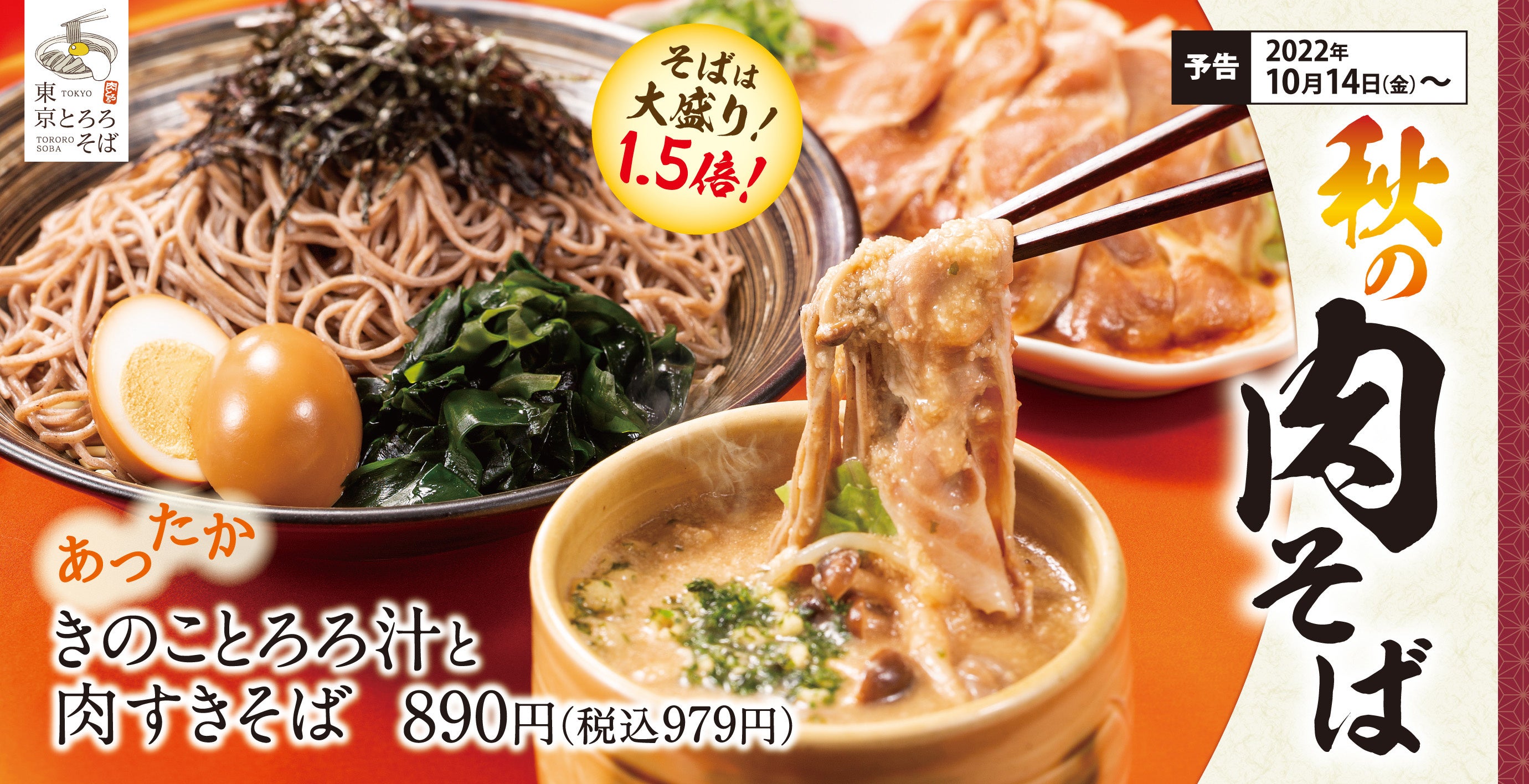 【食欲の秋をひとくちで】秋の肉そば「きのことろろ汁と肉すきそば」東京とろろそばに新登場!