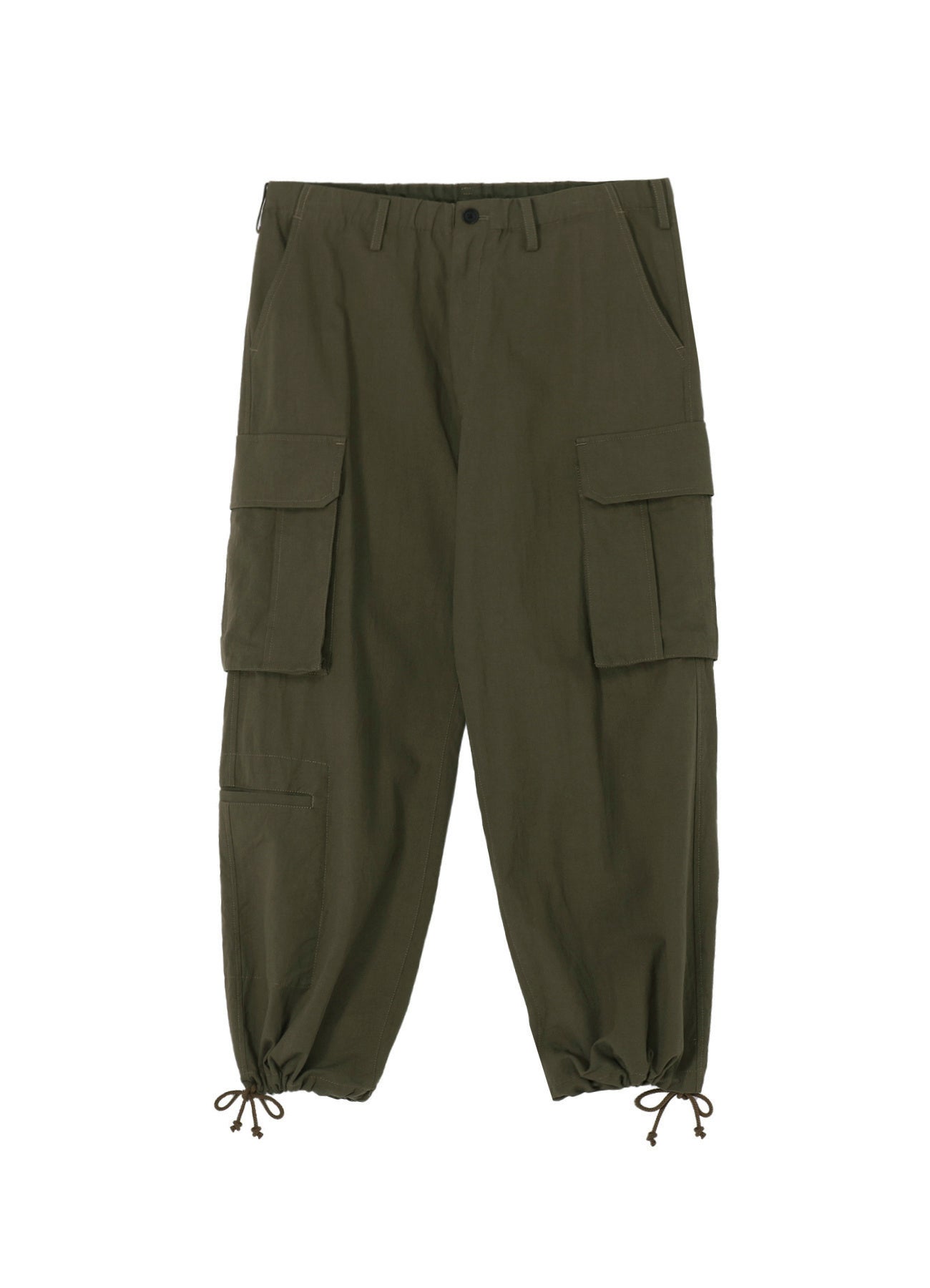 カーゴパンツは、ウエストのドローコードとバックウエストゴムが付いたイージーパンツ仕様で、両側面に配した立体的なポケットが、コーディネートにインパクトを与える履き心地の良いパンツに仕上がっています。