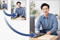 写真編集の機能に新規搭載。小さな画像のディテールをAIが補い、画質をできるだけ保持しながら拡大します。古いデジタルカメラや携帯電話で撮った写真を大きく鮮明に保存し直すことが可能です。