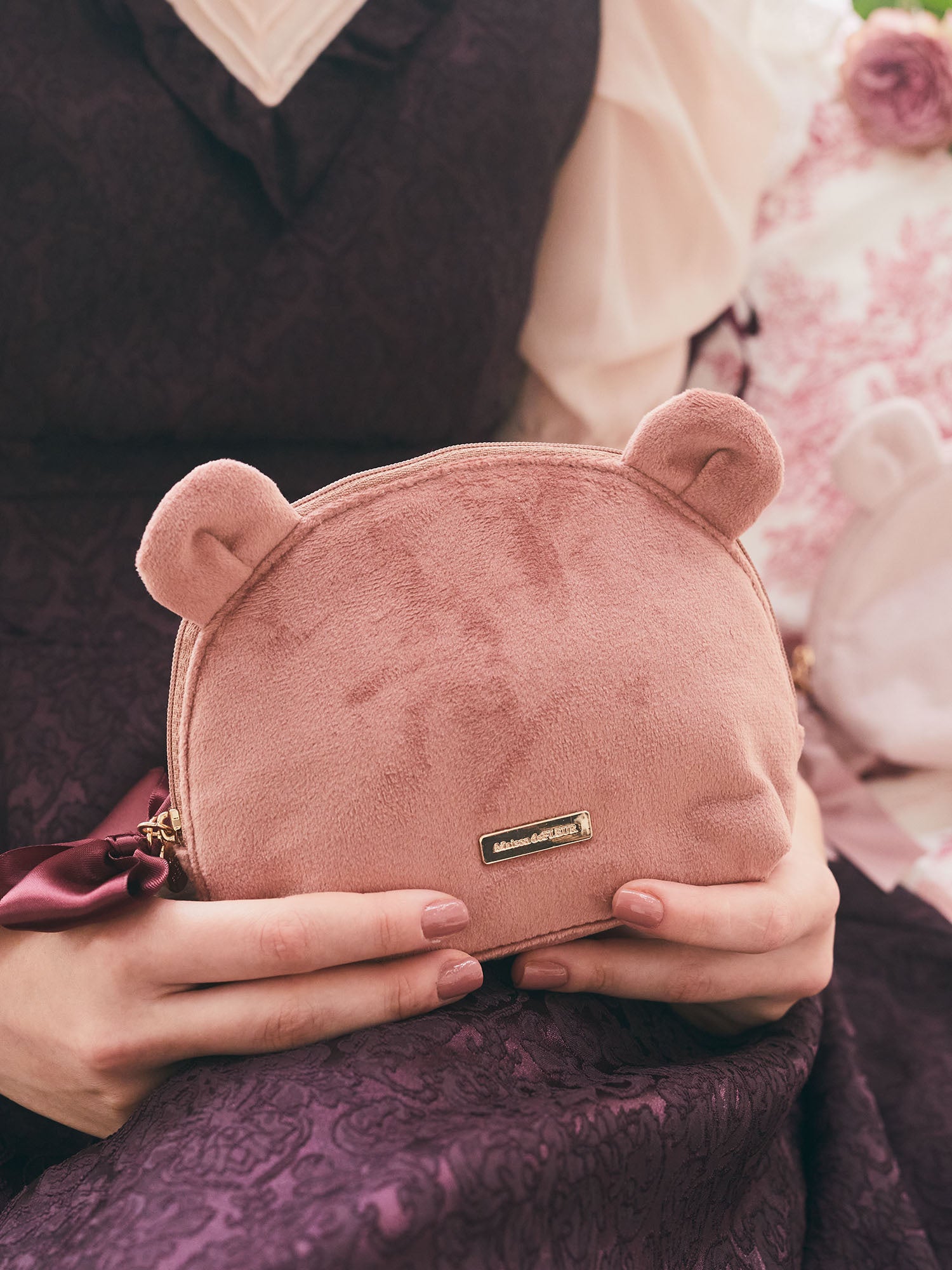 持っているだけで気分が上がる“くま耳”付きラウンドポーチは、起毛素材にプレートロゴとリボンを組み合わせました。
