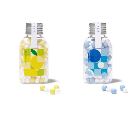カリッと、シュワッと、爽やかに広がるソーダ味の小粒ラムネ。2種アソートです。糖衣ラムネは2層になっておりセンターには共通のソーダ味、外側の糖衣と合わせる事で、黄色のレモンソーダ味、水色のブルーソーダ味の2種類のフレーバーをラインナップ。それぞれの味に合わせたデザインを施した、思わず持ち歩きたくなる手のひらサイズの可愛いボトル入りです。