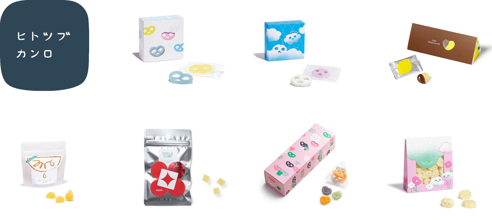 今回出店するポップアップストアでは、ヒトツブカンロ人気No.1の「グミッツェル」や、不思議な“もふふわ食感”が楽しめるマシュマロで普段は店舗でしか購入できない「mofuwa(モフワ)」、甘ずっぱくてジューシーな「ピュレグミ」にこだわりのチョコレートを丁寧にコーティングした「ピュレショコラティエ」など、ヒトツブカンロを代表する看板商品が登場します。さらに、バレンタインデー・ホワイトデー限定商品や、環境を考えたサステナブルなラインヒトツブカンロearthシリーズなど幅広いラインナップをご用意しています。