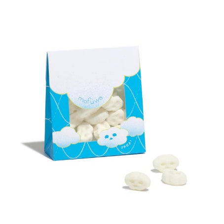 ”もふふわ食感”が楽しめる雲形の「mofuwa」を一口サイズに小さくしたマシュマロです。フレーバーは、期間限定のアップルソーダ味。何とも言えない癒し系の表情が楽しめる「mofuwaプチ」が春らしいパッケージの窓からのぞく姿もかわいい商品です。
